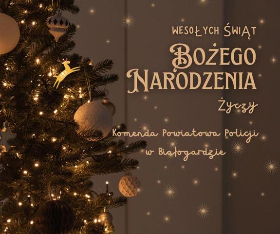Spokojnych i radosnych Świąt Bożego Narodzenia spędzonych w gronie rodzinnym życzą policjanci i pracownicy Komendy Powiatowej Policji w Białogardzie