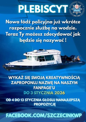 - Nowa łódź w służbie Komisariatu Wodnego Policji w Szczecinie - nadaj nazwę jednostce Witajcie miłośnicy marynistyki i nowoczesnego sprzętu pływającego! Ogłaszamy plebiscyt na nazwę dla nowej łodzi Komisariatu Wodnego Policji w Szczecinie. Aby wziąć udział w naszej akcji, wystarczy odrobina kreatywności i nieograniczona wyobraźnia. Umieść swoją propozycję w komentarzu naszego posta na platformie Facebook. Nie możemy się doczekać Waszych propozycji. Nagrodą dla zwycięzcy będzie rejs łodzią po akwenie Odra-Dąbie oraz symboliczny tytuł matki/ojca chrzestnego jednostki. Dołącz do zabawy i weź udział w naszym konkursie.